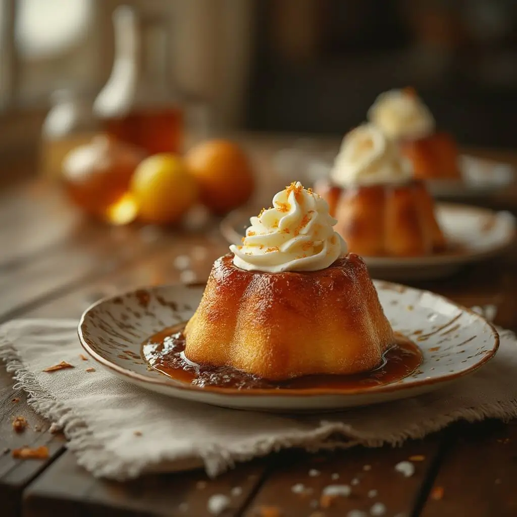Démoulez les babas encore tièdes et plongez-les dans le sirop chaud. Laissez-les s’imbiber pendant quelques minutes en les retournant pour qu’ils absorbent bien le liquide.