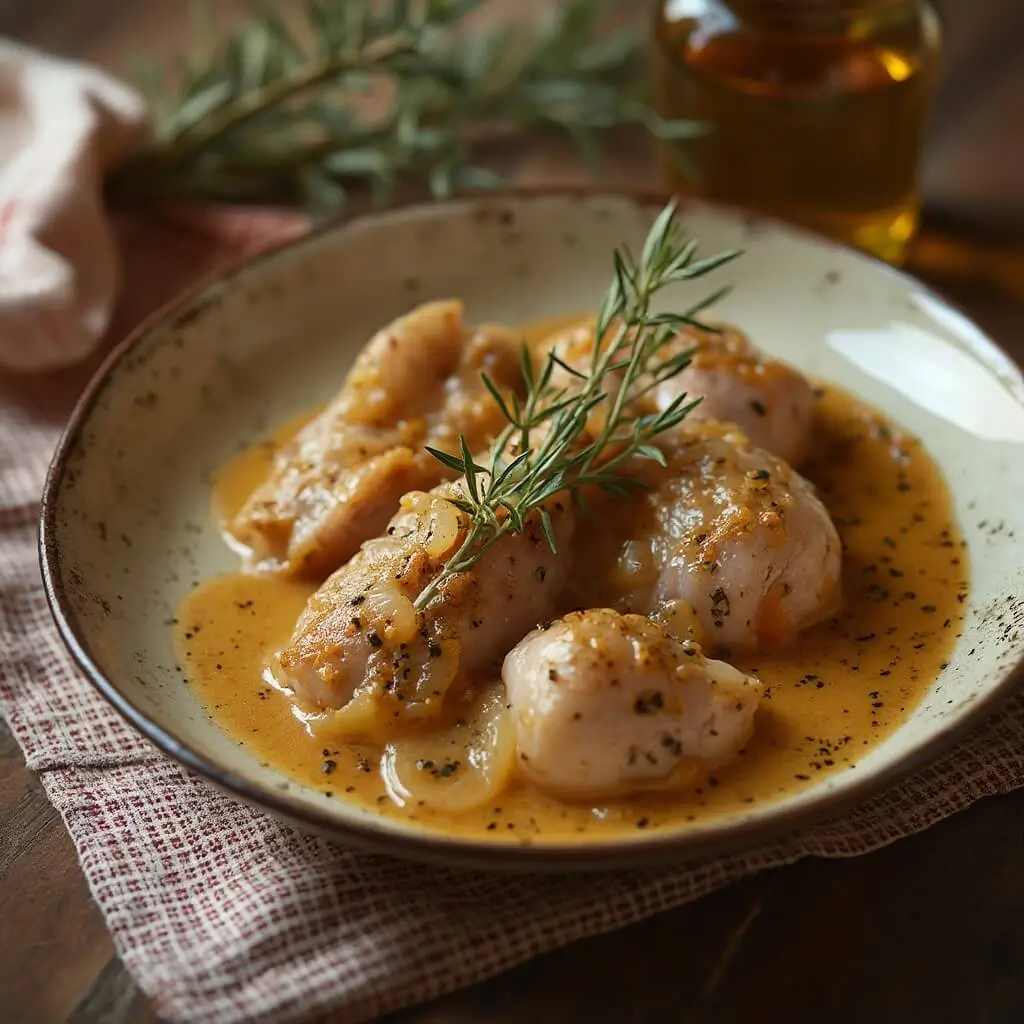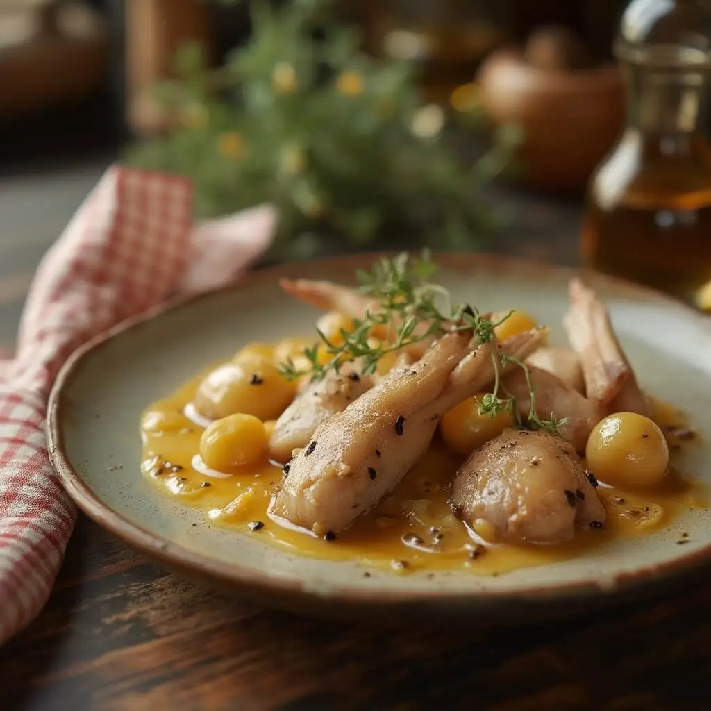 Ajustez l’assaisonnement si nécessaire avant de servir le lapin à la moutarde bien chaud, accompagné de pommes de terre vapeur ou d’une purée maison.
