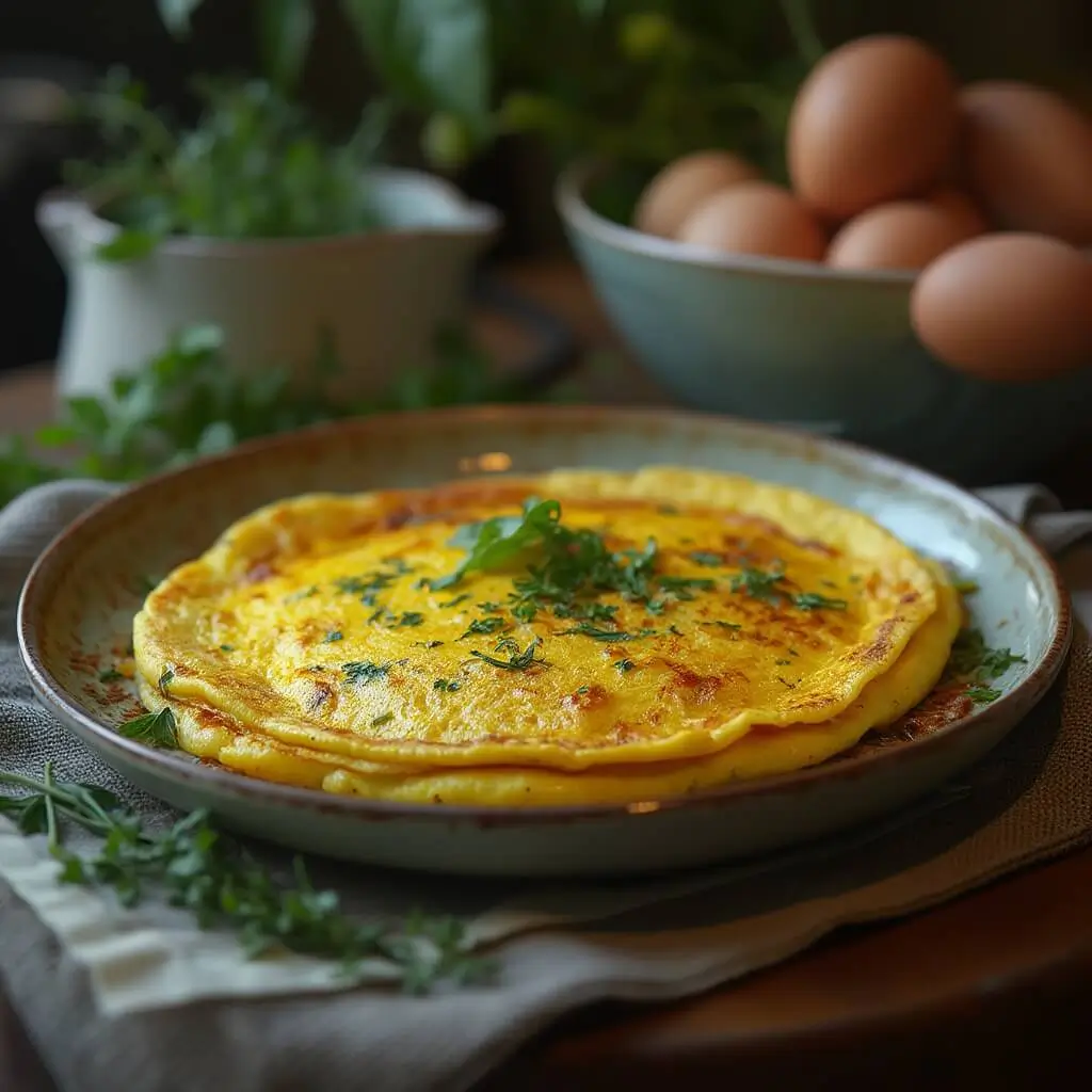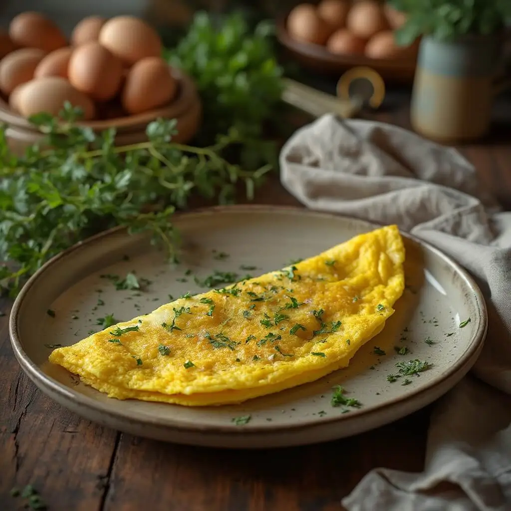 Ployez l’omelette en deux ou enroulez-la délicatement sur elle-même. Faites-la glisser sur une assiette chaude et servez immédiatement.