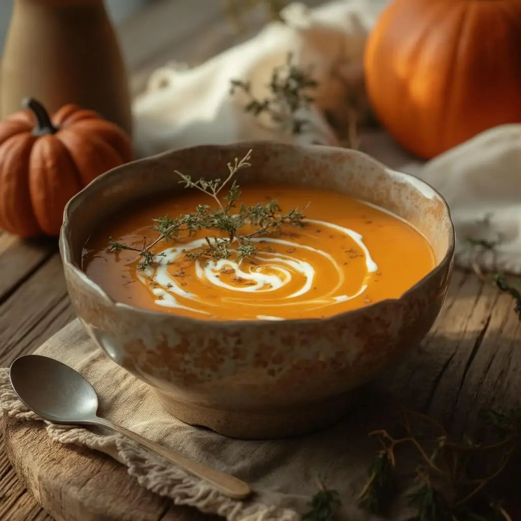 Incorporez la crème fraîche épaisse à la soupe, mélangez bien et ajustez l’assaisonnement avec du sel et du poivre selon votre goût.